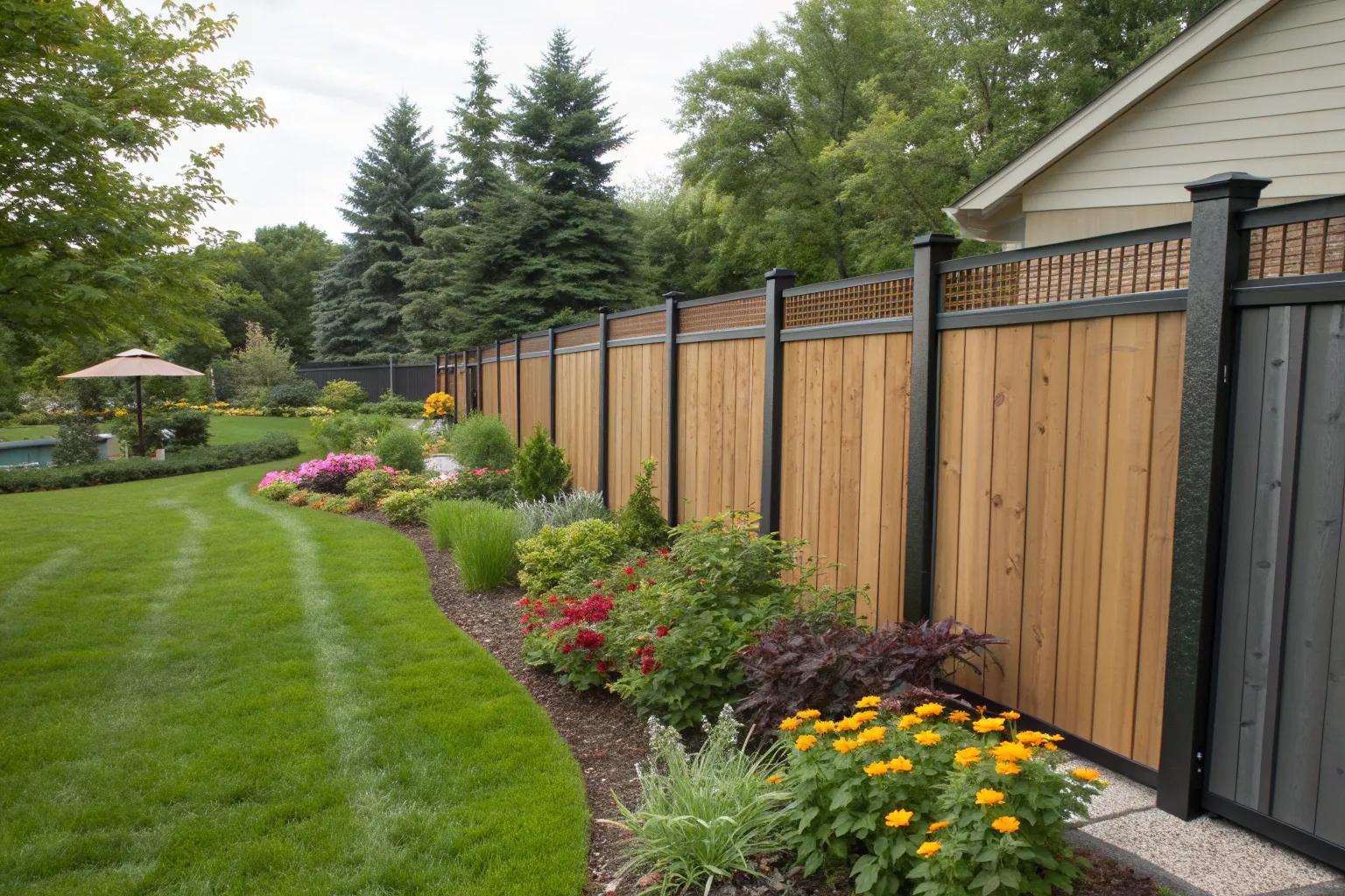 Combine natural wood with sleek metal for a modern industrial look. This pairing is perfect for adding a contemporary edge to your garden.