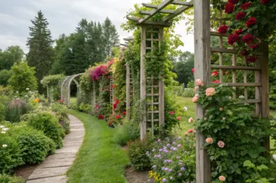 Imagine walking through a green archway with fragrant blossoms above you. This design creates a stunning focal point and is perfect for larger gardens where you want to make a grand entrance.