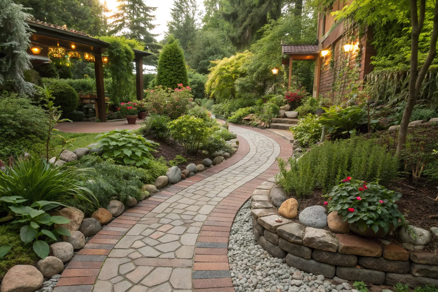 Illuminate your path with creative lighting embedded in the edging. This not only guides the way but adds a magical touch to evening strolls.