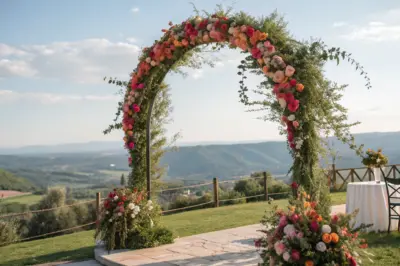 For a bohemian vibe, consider a wildflower arch bursting with colorful blooms like daisies, sunflowers, and lavender. It’s a delightful way to bring a touch of nature’s wild beauty to your ceremony.