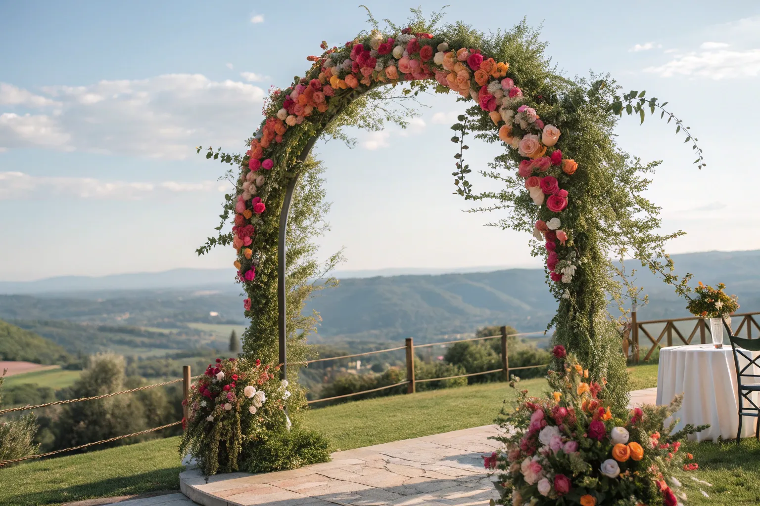 For a sleek and modern vibe, opt for a monochrome floral arch. Choose flowers in varying shades of a single color to create a sophisticated and cohesive look.