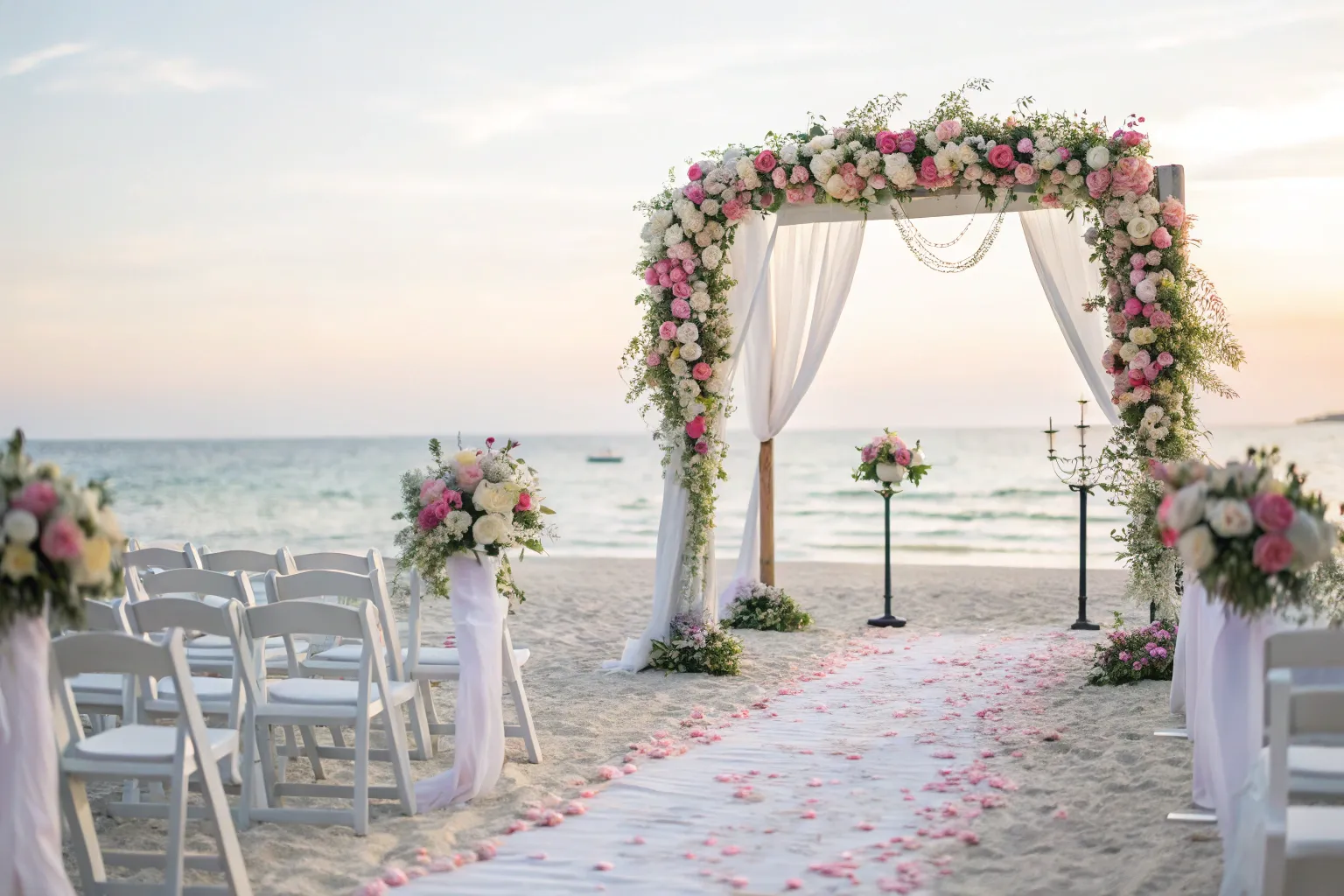 - Greenery Garlands: Add lush greenery garlands to your arch, effortlessly creating a natural, beachy vibe.