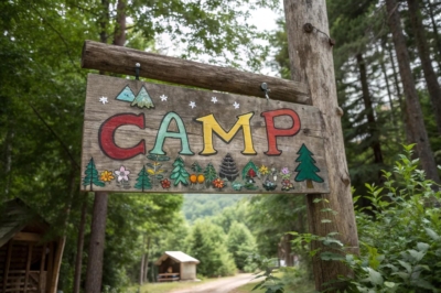 - Reclaimed Wood Sign: Embrace sustainability with a sign crafted from reclaimed wood, perfect for your eco-conscious camp.