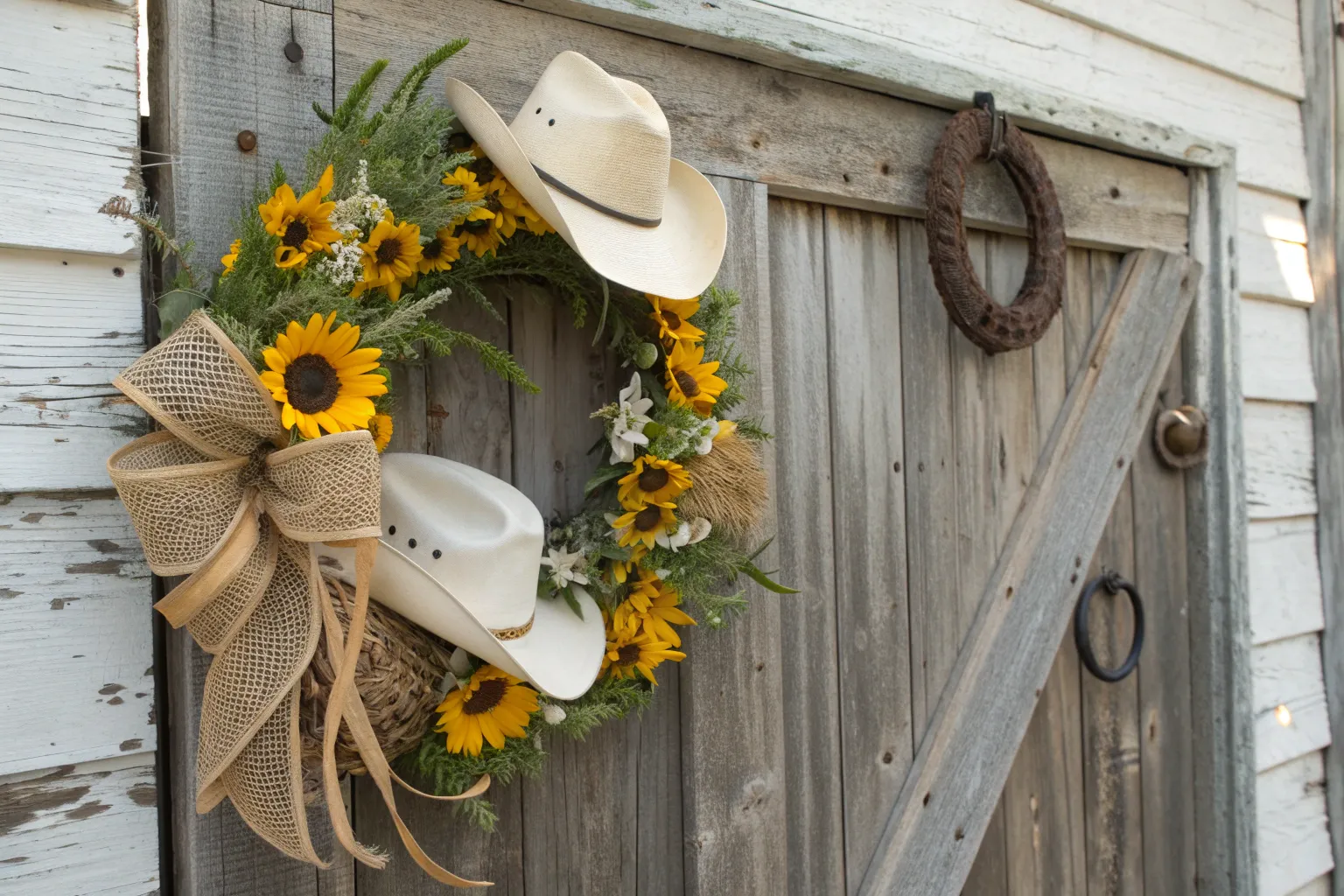 - Decorative Small Cowboy Hat: Add Western charm to your wreath with this small cowboy hat as a centerpiece.