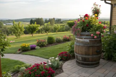 - Rustic Whiskey Barrel Planter: Enhance your garden with a rustic whiskey barrel planter, perfect for a cozy cottage theme.