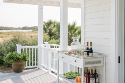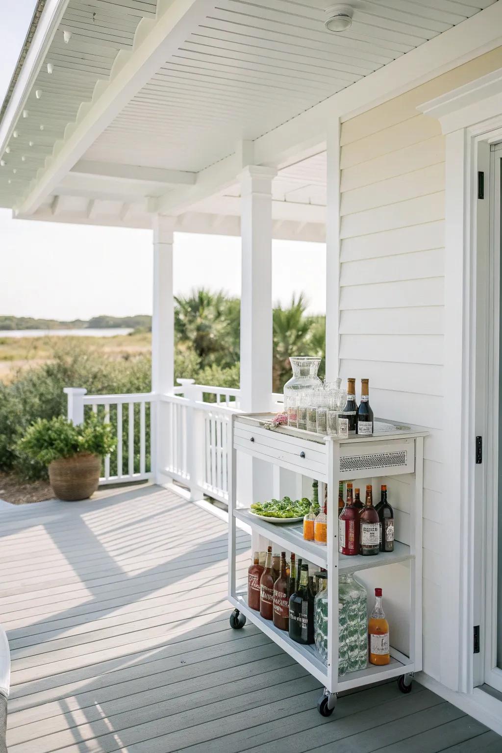 Set up a small beverage station for entertaining guests. It’s a fun and practical idea that makes hosting on your porch a breeze.