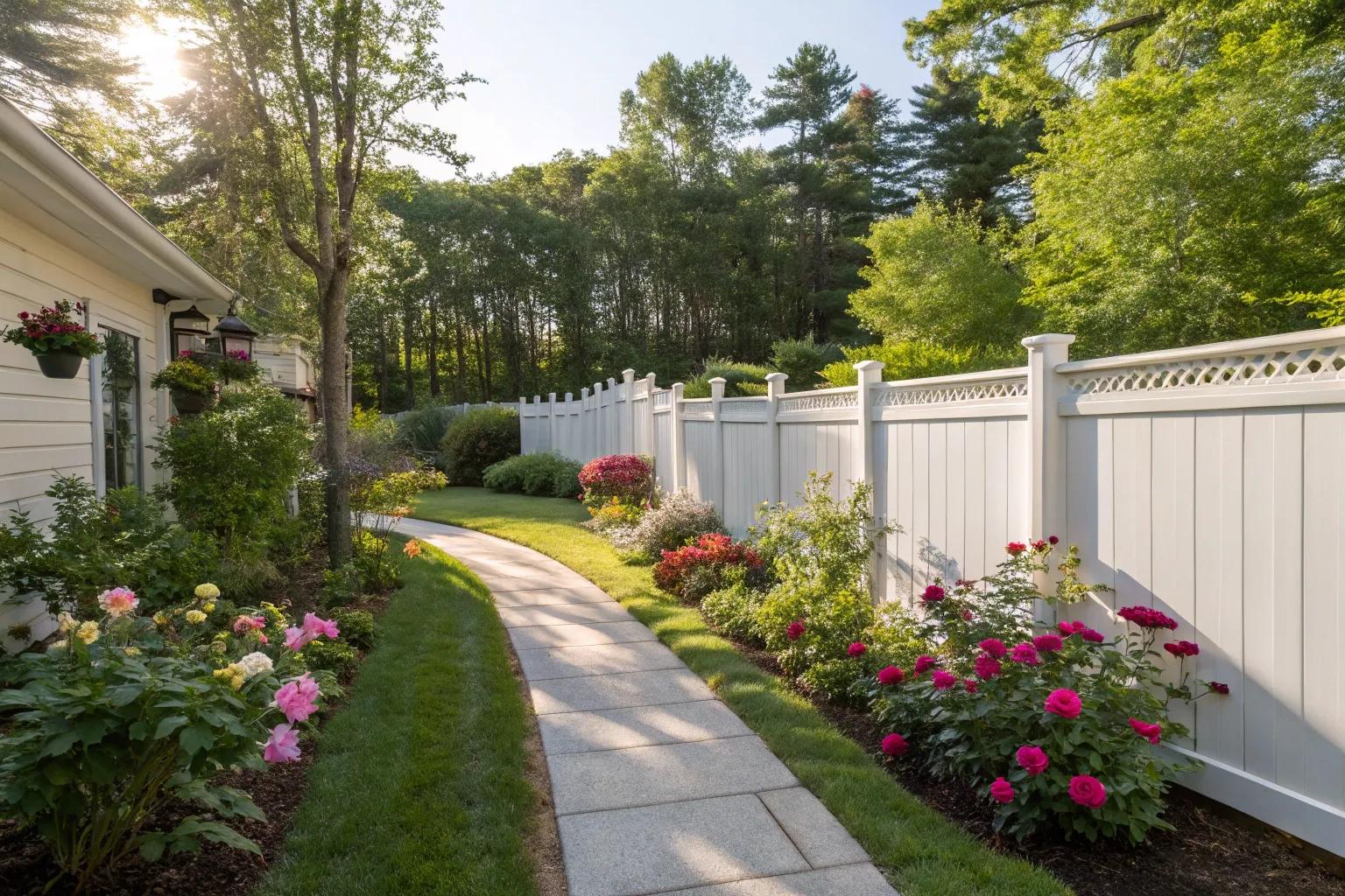 Pairing your white vinyl fence with colorful flower beds can create a stunning visual contrast. I often suggest this to clients who want to add a burst of color and charm to their gardens.