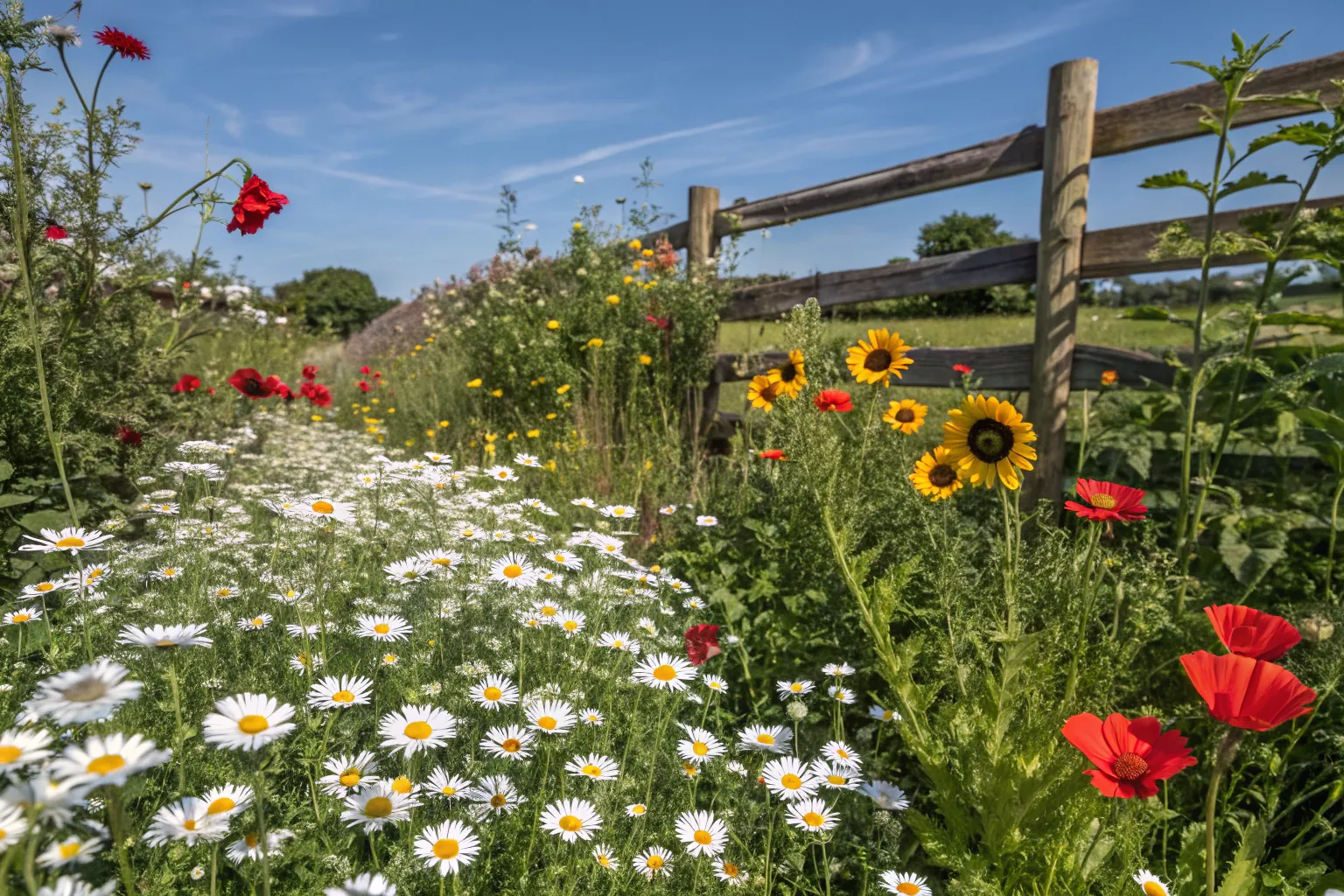 Enhance your landscape by planting a wildflower border along fences or pathways. This can act as a natural, colorful boundary and guide through your garden space.
