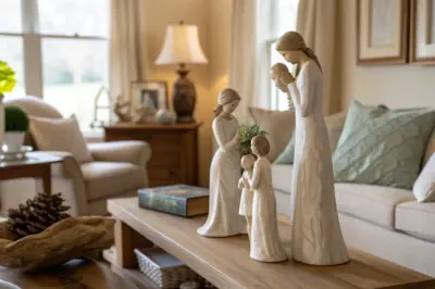 A small table can become a stage for your Willow Tree collection. I often pair figurines with a stylish lamp or a small plant to enhance the cozy vibe of my living room.