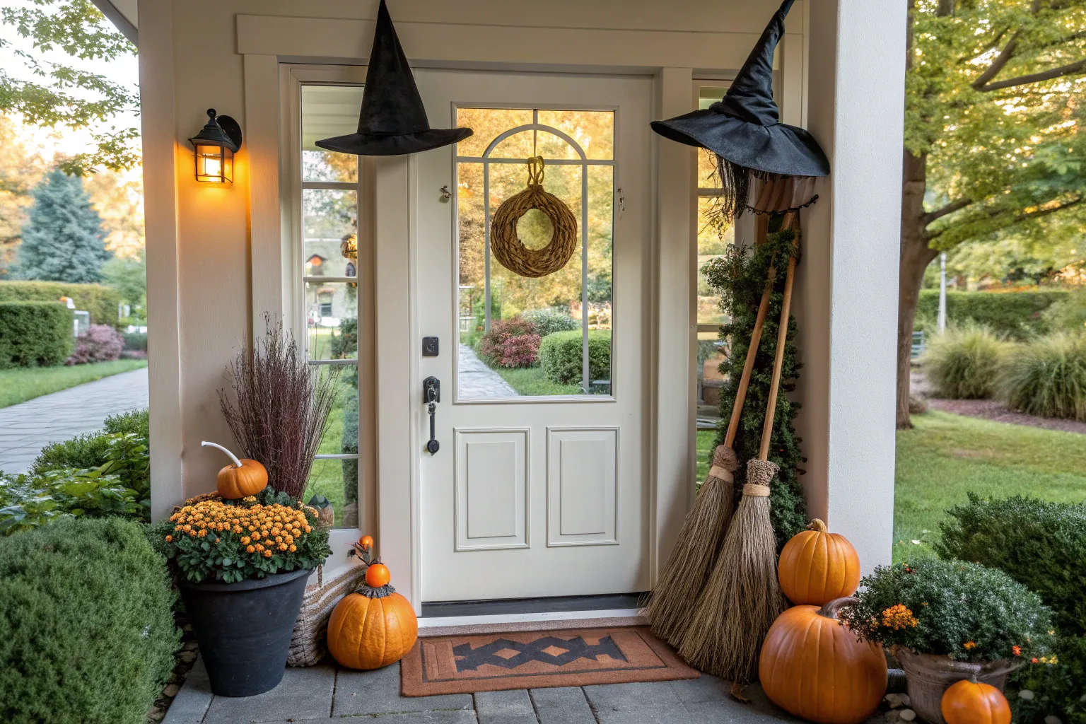 - Black Witch Hat Decoration: Enhance your front door with a striking witch hat for a spooky autumn vibe.