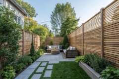 - Horizontal Wooden Slats: Enhance your garden’s elegance by installing these durable wooden slats for a modern look.