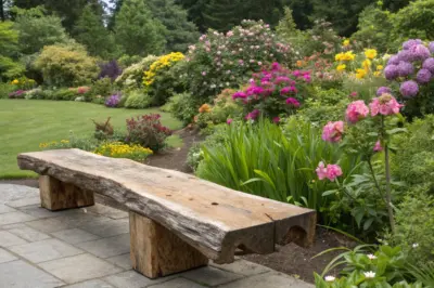 A wood slab bench with a rustic finish fits beautifully in countryside homes or cabins, blending seamlessly with natural surroundings. It’s a favorite in my consultations for creating that perfect rustic retreat.