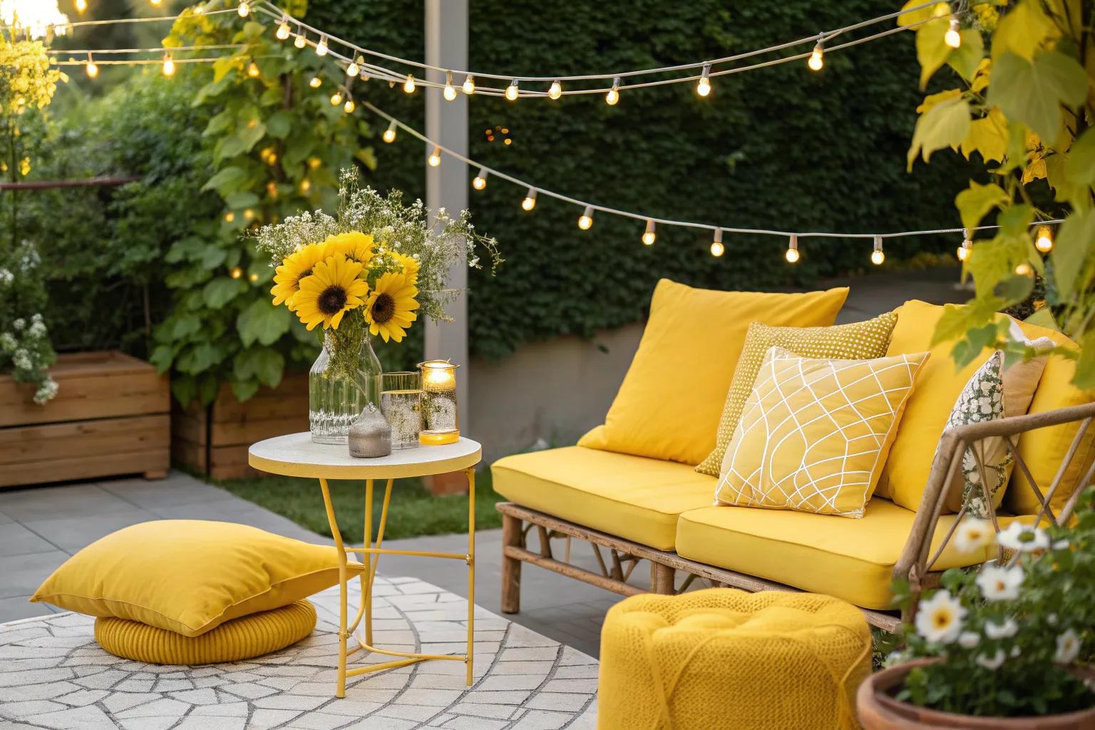 - Outdoor Patio String Lights: Create a warm ambiance with string lights, complementing your stunning yellow floral decor.