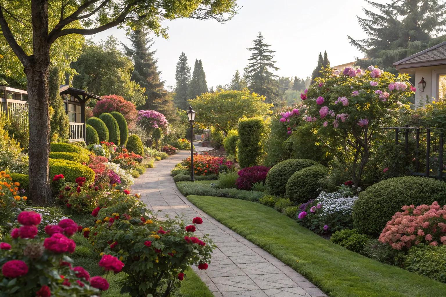 Incorporating evergreens like boxwoods ensures your garden stays green even in the off-season. They act as a beautiful backdrop for seasonal blooms.